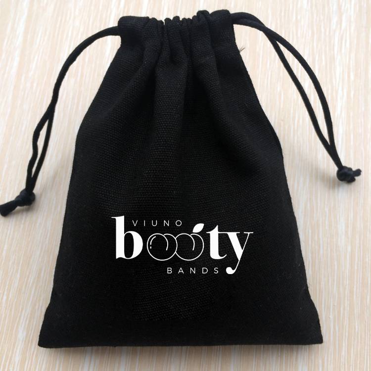 custom black cotton with logo drawstring bags