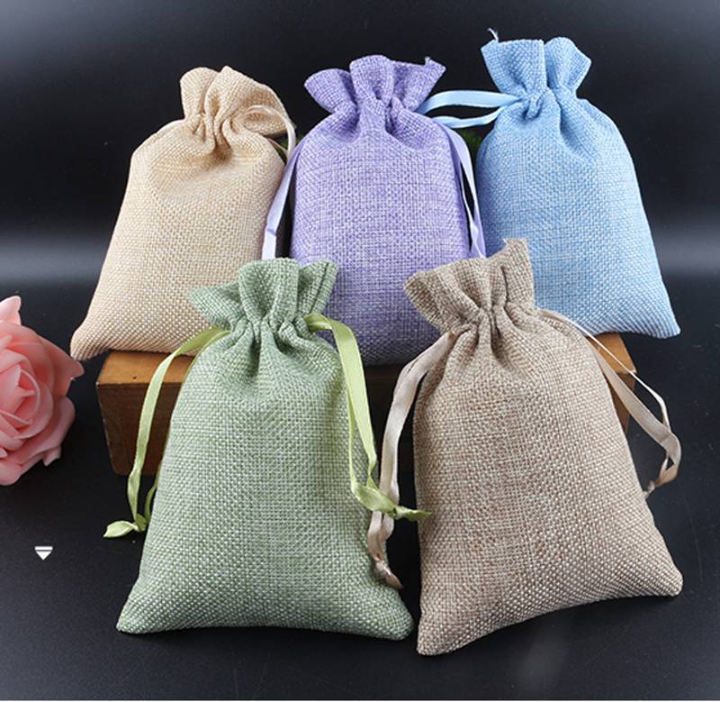 Colored Jute Drawstring Burlap Bag pouch Wholesale