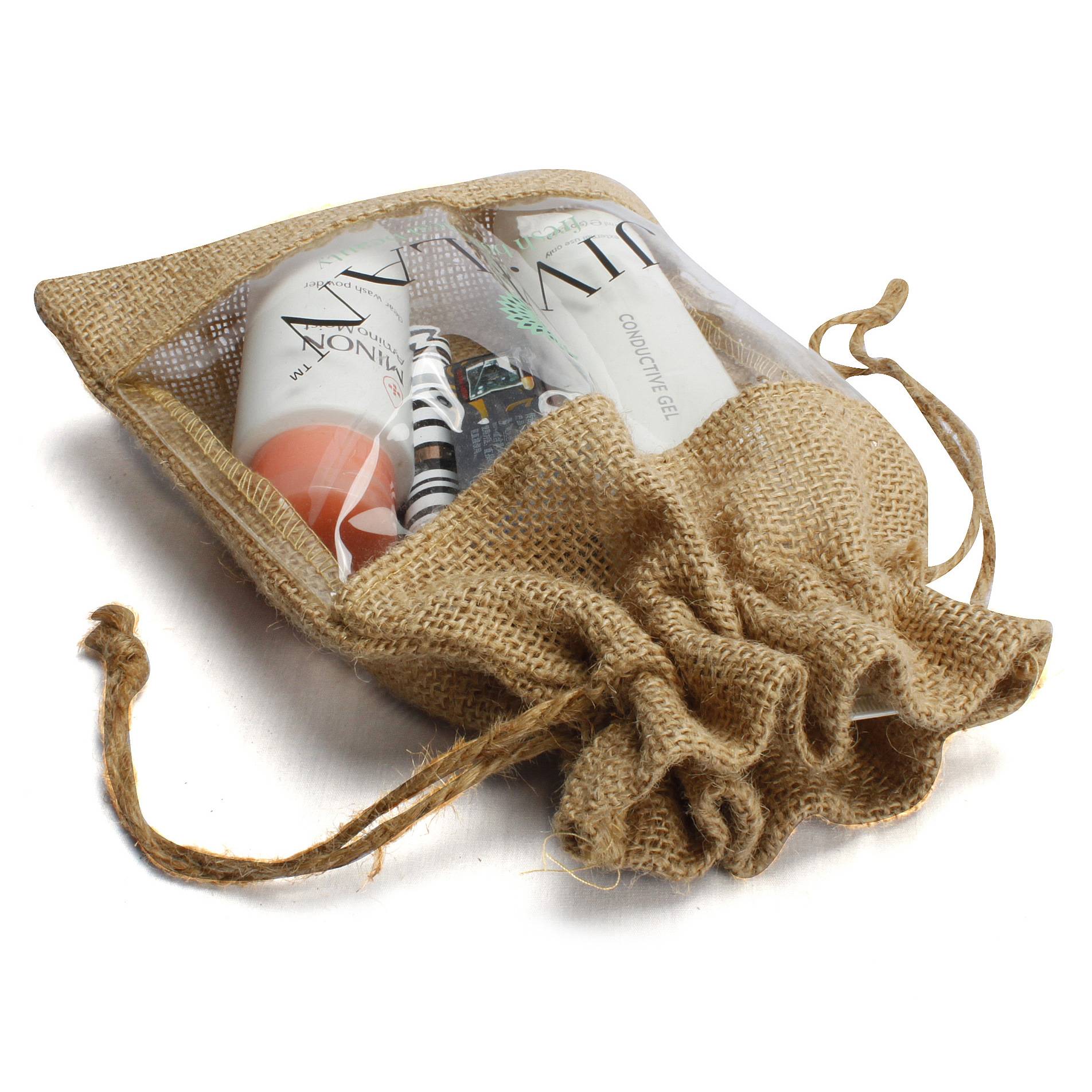 Customized Printing Fashion Natural Drawstring Pouch Jute Cosmetic Bag With PVC Window |