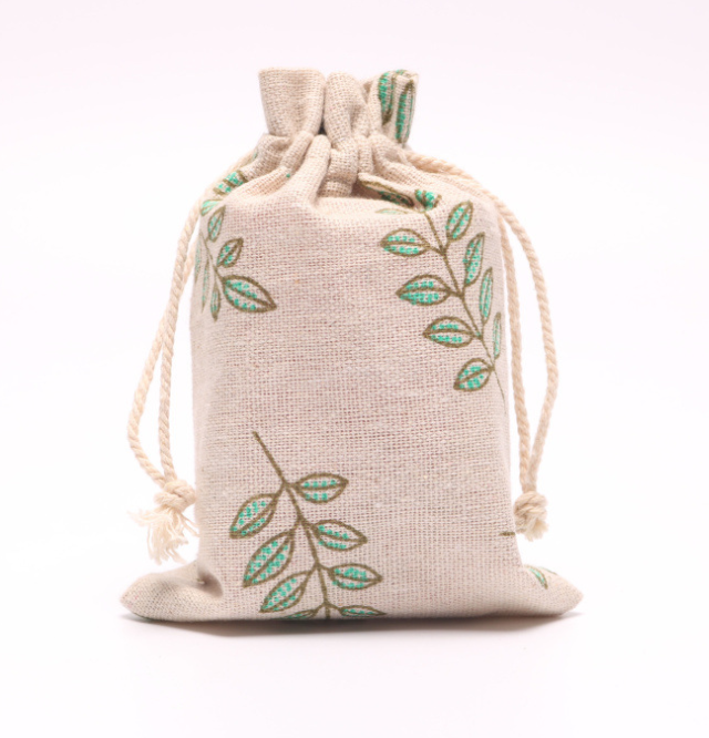 Exclusive custom Chinese ethnic style natural color linen drawstring bag with handmade flax cord,organic |