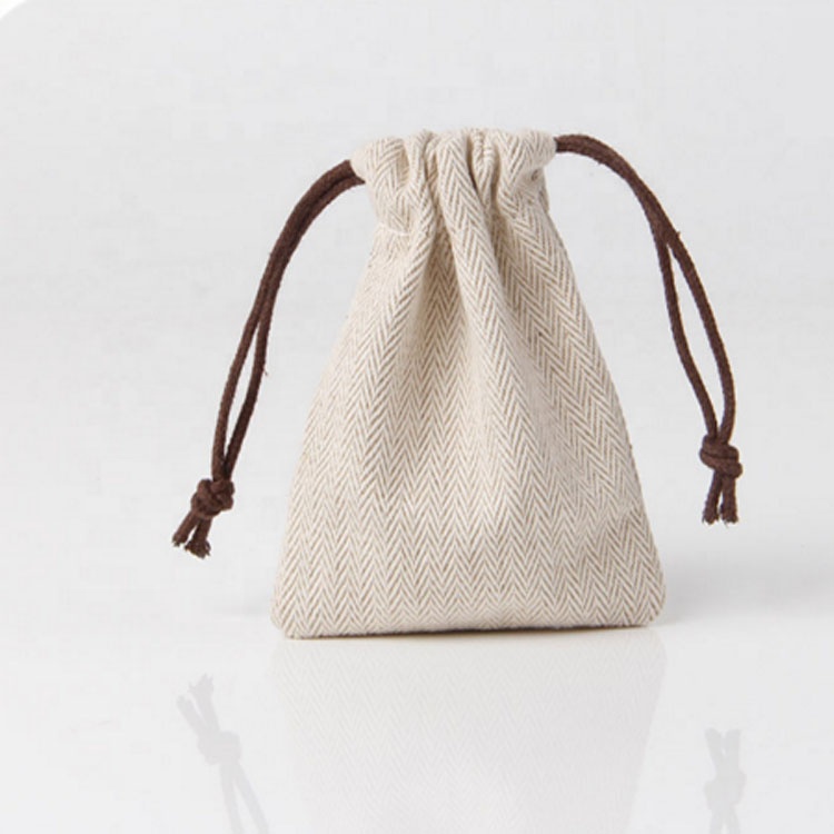 Jute Bags High quality tableware herringbone linen drawstring bag