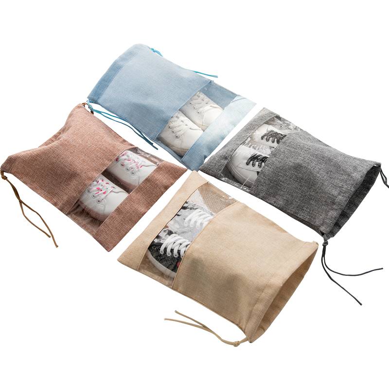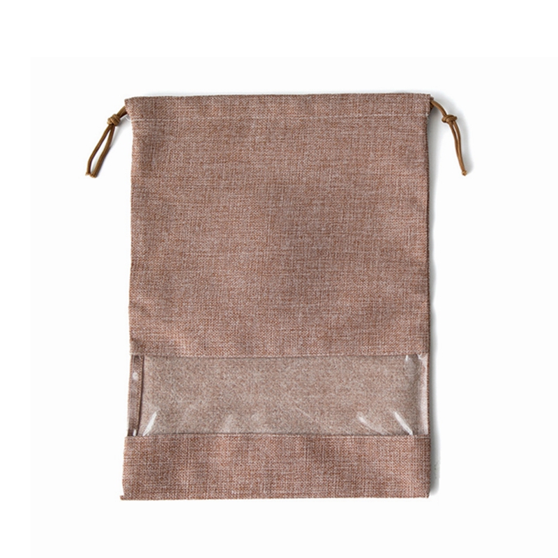 Natural linen fabric eco friendly breathable shoe storage bag linen drawstring packaging bag