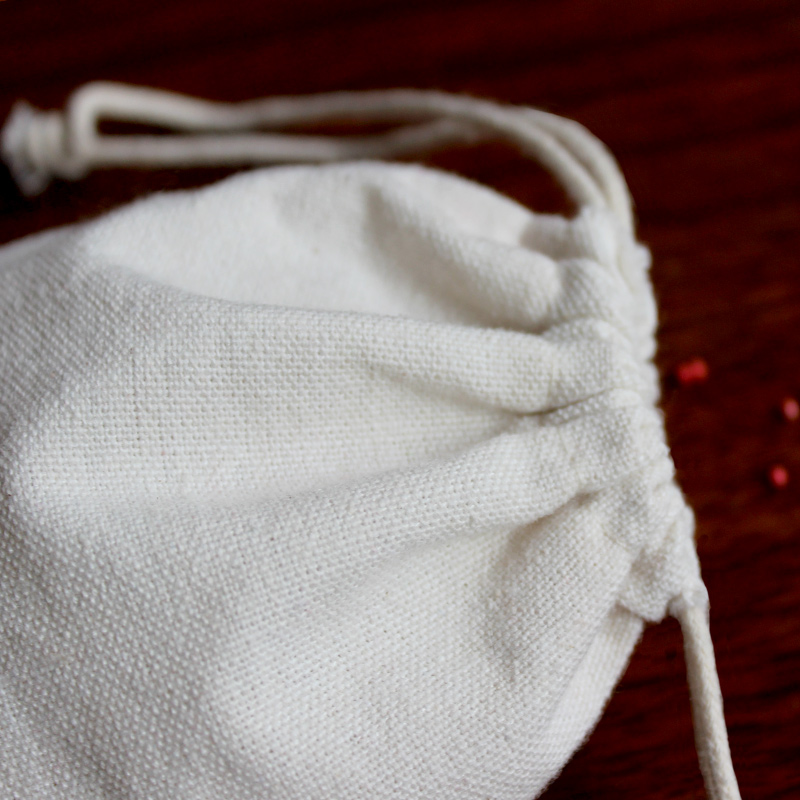 Plain cotton linen drawstring pouches packaging small cotton bag with ties