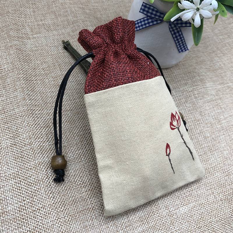 Small Christmas Sack Cloth Jute Christmas Sugar Drawstring Gift Bag