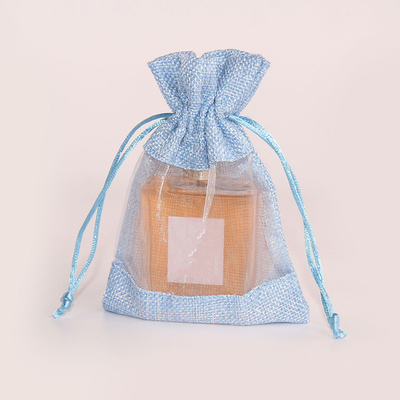 Custom Linen Organza Bag Canvas makeup jewelry drawstring pouch bag with logo printing