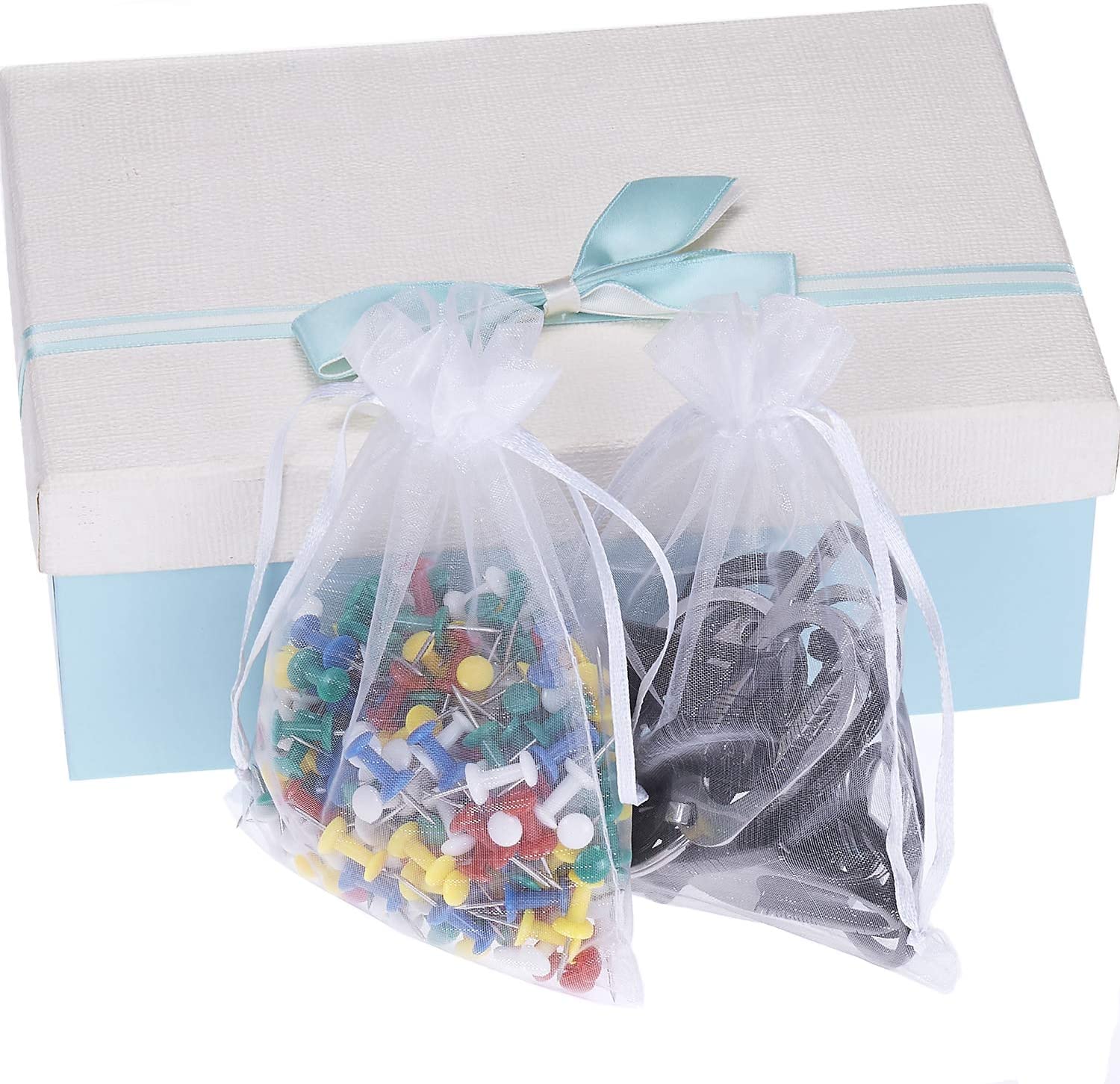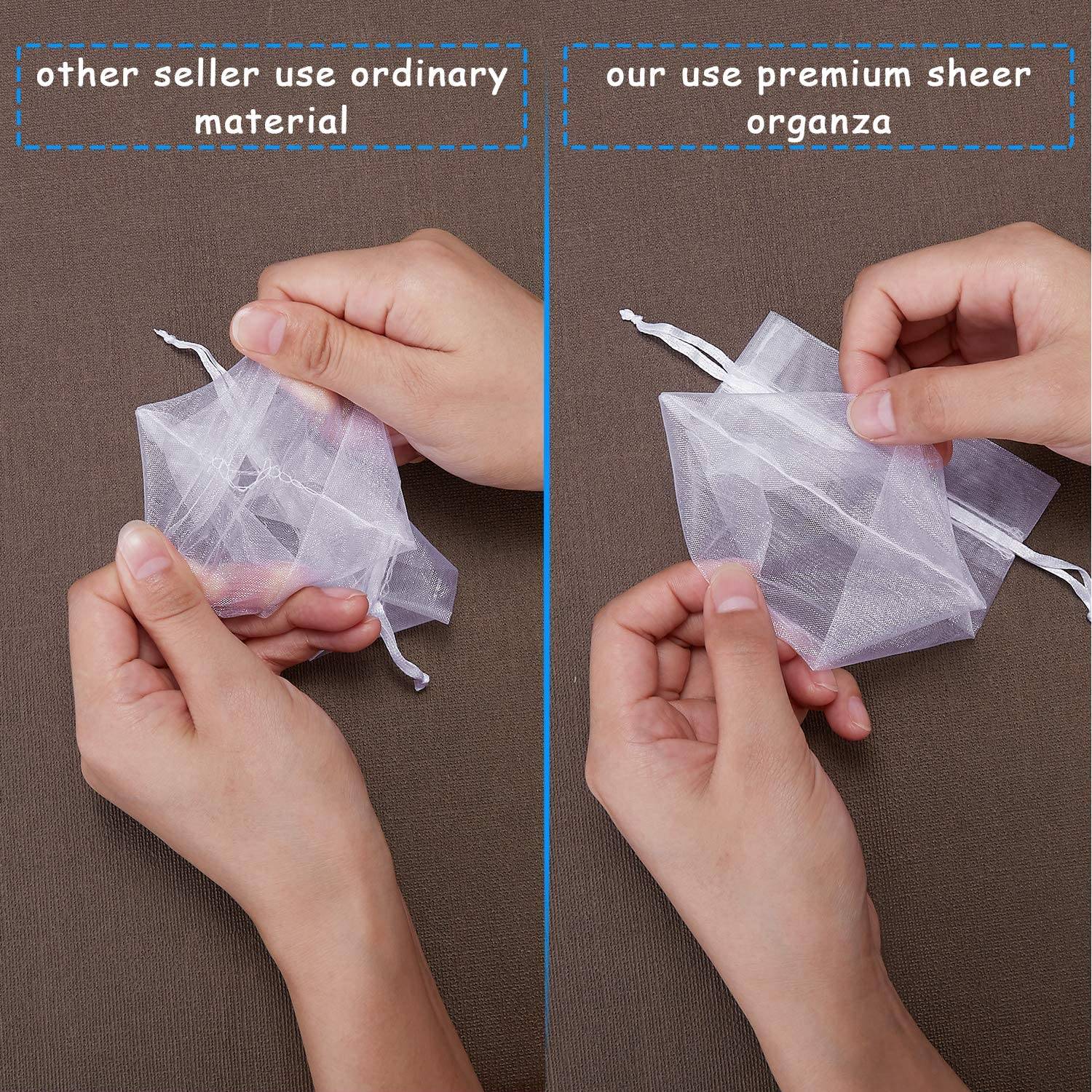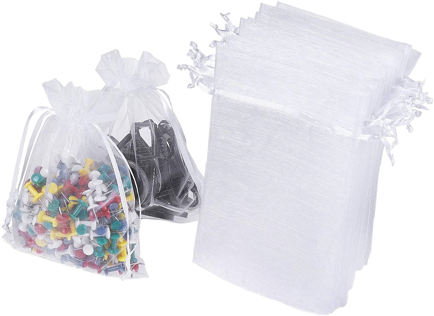 Custom white silk organza drawstring pouch gift bags with ribbon