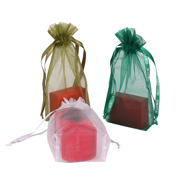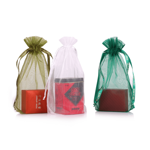 custom logo white organza bags Large organza drawstring bag with ribbon printing