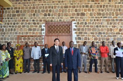 This morning, many people from other factory in Chamber of Commerce visit us for our morning meeting.