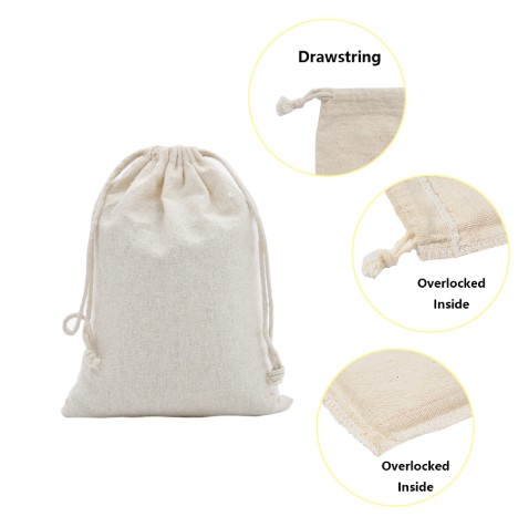 wholesale 100% small large fair trade linen organic custom print muslin cotton canvas drawstring bag white high quality