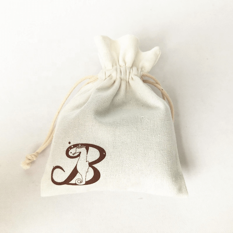 Drawstring jewelry cotton custom printed logo muslin pouches