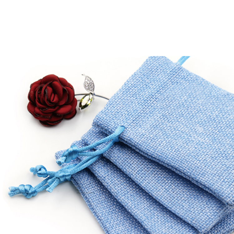 Eco small linen drawstring gift bag jute jewelry pouch