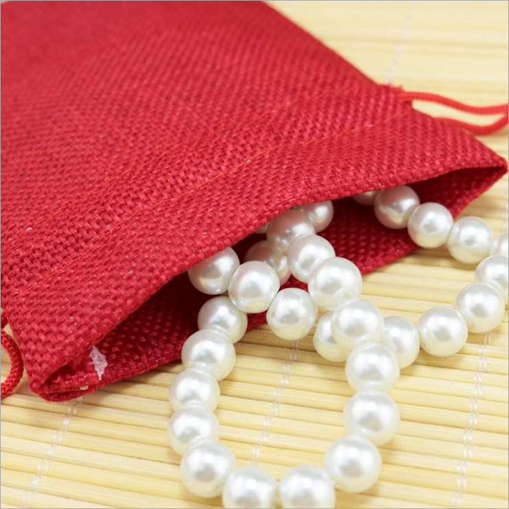 Small jute fabric bag pouch for coffee with ribbon drawstring