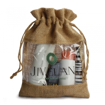 Customized Printing Fashion Natural Drawstring Pouch Jute Cosmetic Bag With PVC Window