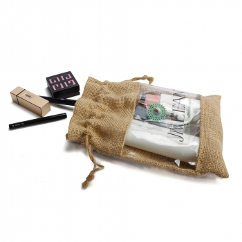 Customized Printing Fashion Natural Drawstring Pouch Jute Cosmetic Bag With PVC Window |
