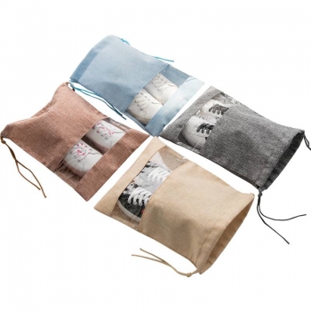 Natural linen fabric eco friendly breathable shoe storage bag linen drawstring packaging bag