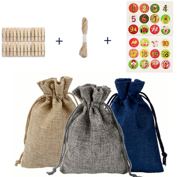 Christmas Deco Gift Bags Sets Linen Jute Drawstring Bags Sacks Wedding