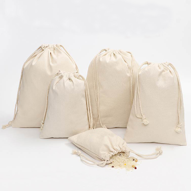 Wholesale Natural cotton linen Reusable drawstring bag for Food