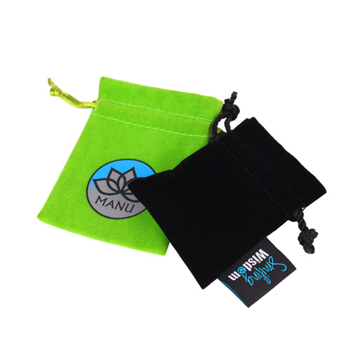 Custom Silver Stamped Velvet Drawstring Jewelry Pouch Bag with Round Bottom