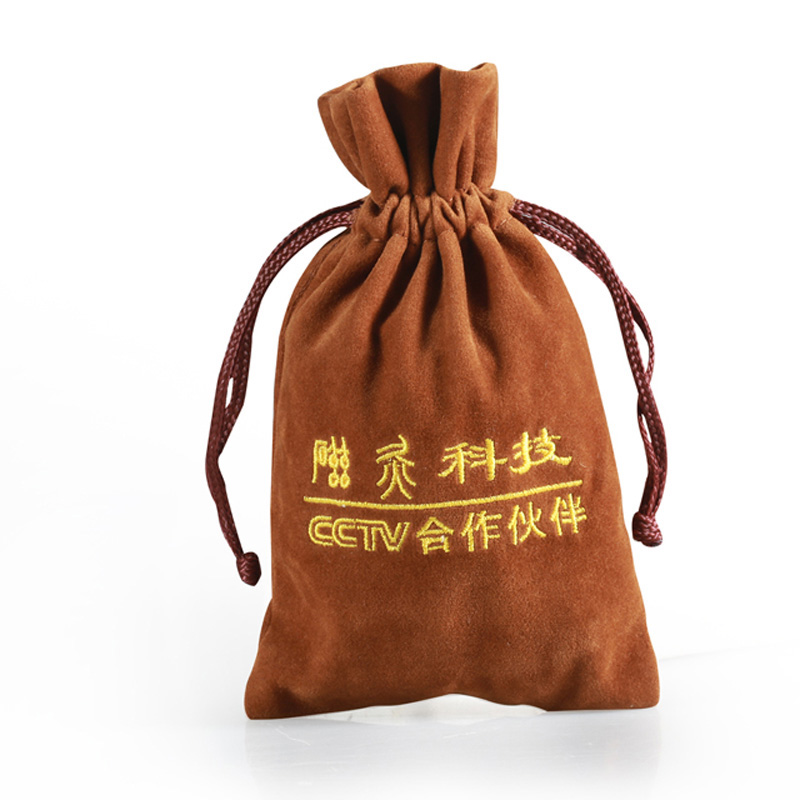 luxury costom logo printed black velvet jewelry pouch bags with embroidery Logo
